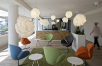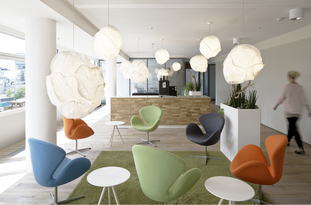 "jungle" und "savanna" umgesetzt. Entstanden ist ein abwechslungsreicher Arbeitsraum mit Kommunikationszonen wie dem "social hub",