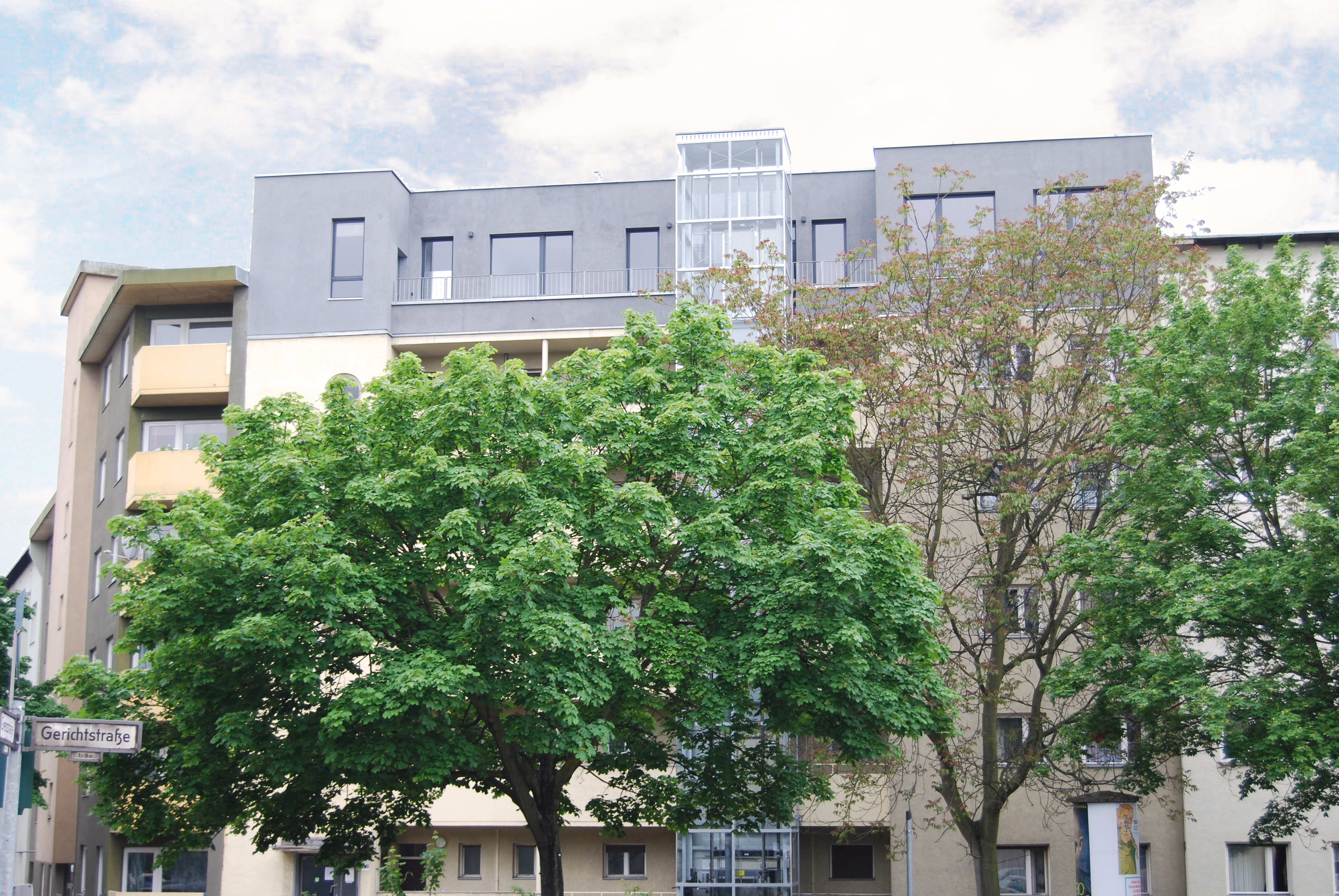 Das bestehende Wohngebäude stammt aus dem Jahr 1958 und besteht aus einem Kellergeschoß und vier Obergeschoßen. Die Erschließung der 20 Wohneinheiten wird über ein seitlich angeordnetes Treppenhaus und zur Straße hin ausgerichteten Laubengängen organisiert.