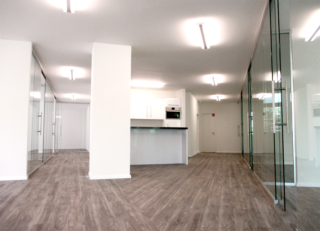 Nach Vermietung der Flächen wurden die Grundrisse gemäß den individuellen Anforderung der Mieter strukturiert und angepasst sowie die Teeküchen ergänzt.