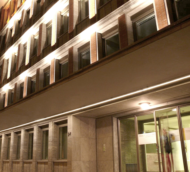 Das aus zwei Gebäudeteilen bestehende Bürohaus wurde in den 50er Jahren von