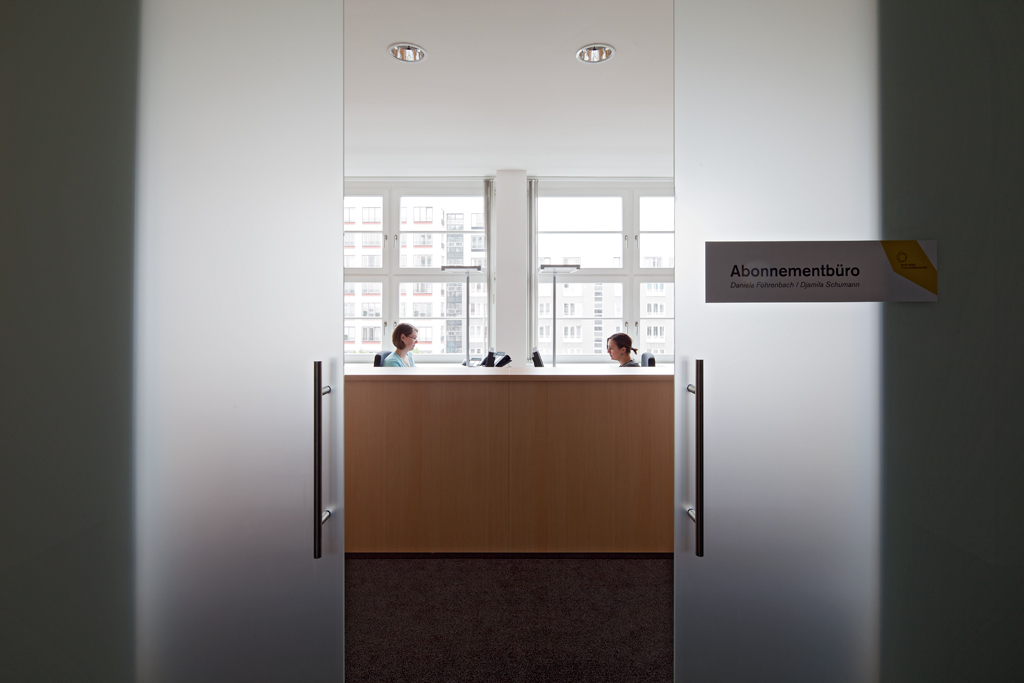 Das nahe dem Potsdamer Platz gelegene Bürogebäude aus der Zeit des Art Deko wurde nach den Plänen der Architekten GMP umstrukturiert und mit einem Dachaufbau versehen. Durch mmrtg|architekten wurde die Büroetage im 4.OG nach den Bedürfnissen des Mieters Berliner Philharmoniker geplant und hochwertig um- und ausgebaut.Bemerkenswert war auch hier die sehr zügige Planungs- und Ausführungszeit von insgesamt 12 Wochen.