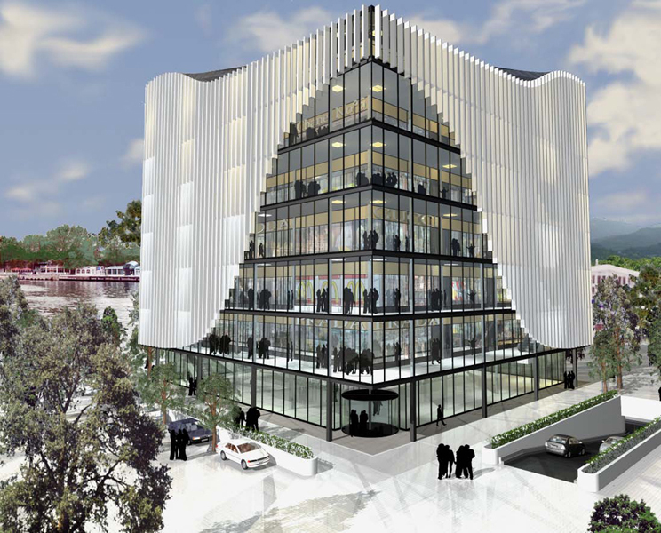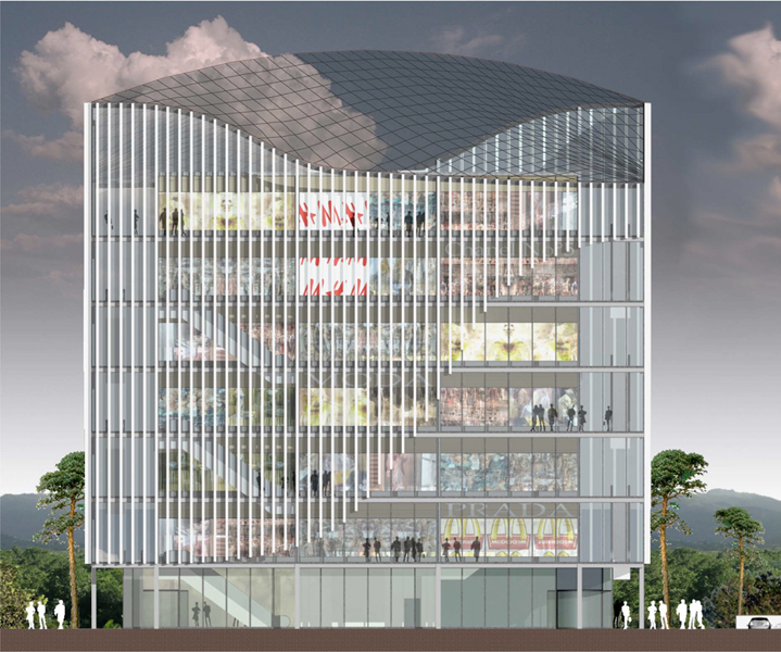 darstellen. Die innere Erschließung erfolgt über ein Rolltreppensystem, dass