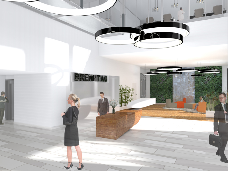 der Fassade, Reorganisation der Eingangs- und Lobbybereiche sowie Entwicklung von modernen, auf den Mieter