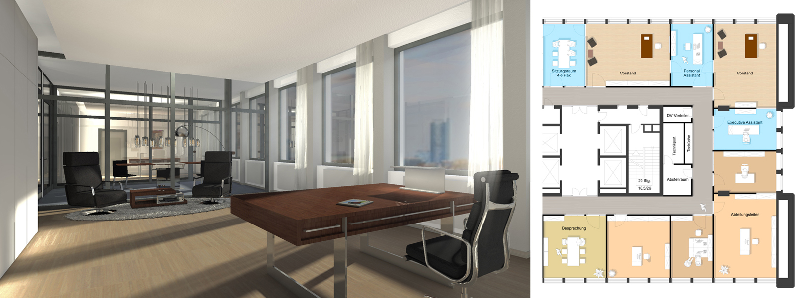zugeschnittenen Bürokonzepten unter Berücksichtigung des Raumprogramms, beauftragt.